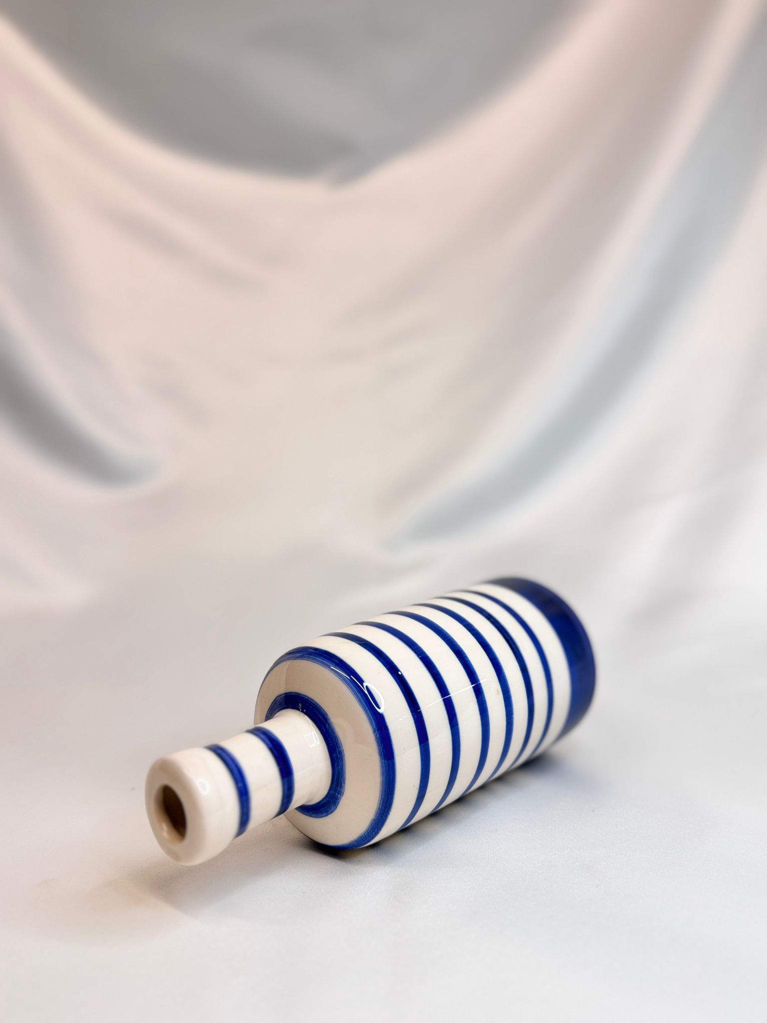 El Yapımı Seramik Yağdanlık / Vazo: “Marin Çizgiler”